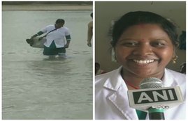 छत्तीसगढ़ की एक महिला स्वास्थ्य कर्मचारी ने चारों ओर से पानी से घिरे एक दुर्गम गांव में पैदल नदी पार…