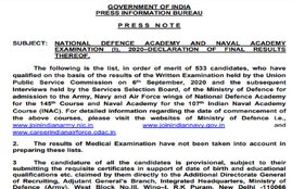 UPSC NDA NA (I) 2020: उम्मीदवारों के अंक अंतिम परिणामों की घोषणा की तारीख से 15 दिनों के बाद वेबसाइट…
