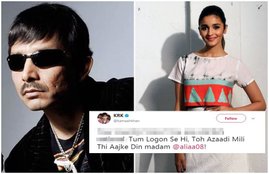 ट्रेंडिंग Independence Day पर KRK ने आलिया भट्ट पर साधा निशाना, कहा- तुम लोगों से ही तो आजादी मिली थी! इस बार कई ट्विटर यूजर्स कमाल खान के समर्थन में भी नजर आए। By जनसत्ता ऑनलाइनAugust 16, 2017 09:26 IST