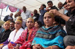 मध्य प्रदेश में शनिवार को महिला टीचरों ने विरोध का नया तरीका अपनाया।