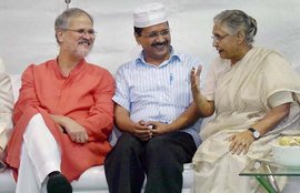 दिल्ली के मुख्यमंत्री अरविंद केजरीवाल द्वारा आयोजित इफ्तार पार्टी में उपराज्यपाल नजीब जंग, पुलि कमिश्नर बीएस बस्सी, दिल्ली की पूर्व…