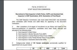 दिल्ली पुलिस में एसआई के 224 पदों के सापेक्ष 222 अभ्यर्थियों, सीएपीएफ में एसआई के 1052 पदों के सापेक्ष 1050…