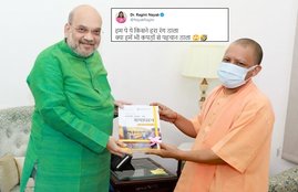Yogi Adityanath और Amit Shah की इस तस्वीर पर चुटकी लेते हुए कांग्रेस प्रवक्ता रागिनी नायक ने लिखा कि हम…