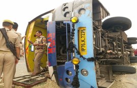 рдореИрдирдкреБрд░реА рдореЗрдВ рддреЗрдЬ рд░рдлреНрддрд╛рд░ рдмрд╕ рдбрд┐рд╡рд╛рдЗрдбрд░ рд╕реЗ рдЯрдХрд░рд╛рдХрд░ рдкрд▓рдЯ рдЧрдИ рд╣реИред рдЗрд╕ рд╣рд╛рджрд╕реЗ рдореЗрдВ 17 рд▓реЛрдЧреЛрдВ рдХреА рдореМрдд рд╣реЛ рдЧрдИ…