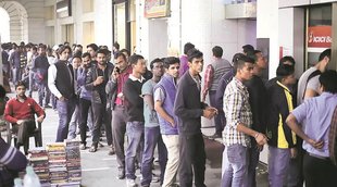 सर्वर की धीमी रफ्तार के कारण क्रेडिट या डेबिट कार्ड लेकर पहुंचे लोगों को खड़े रहने पर मजबूर किया।