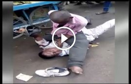 वीडियो में गुस्साया ठेले वाला हवलदार की छाती पर बैठकर मुक्के मारता दिख रहा है।