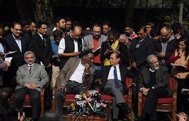 सुप्रीम कोर्ट के चार जस्टिस जस्टिस चेलामेश्वर, जस्टिस रंजन गोगाई, जस्टिस मदन भीमराव और जस्टिस कुरियन जोसेफ पहली बार मीडिया…