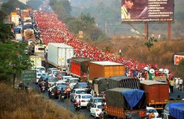 अपनी कई मांगों पर दबाव बनाने के लिए नासिक से छह मार्च को‘ लांग मार्च’ पर निकले महराष्ट्र के विभिन्न…