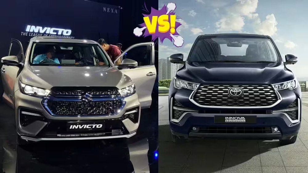 भारत की सबसे बड़ी कार निर्माता कंपनी मारुति सुजुकी ने इनोवा हाइक्रॉस-आधारित इनविक्टो के साथ प्रीमियम एमपीवी सेगमेंट में कदम रखा है। ऑल-न्यू मारुति सुजुकी इनविक्टो को भारत में 24.79 लाख रुपये की शुरुआती कीमत के साथ लॉन्च किया गया है। इनविक्टो नेक्सा डीलरशिप के माध्यम से बेचा जाने वाला आठवां उत्पाद है। इस एमपीवी का पहला मुकाबला टोयोटा इनोवा हाई क्रॉस के साथ होना है। इस आर्टिकल में आप पढ़ लीजिए Maruti Suzuki Invicto vs Toyota Innova Hycross की कंपेयर रिपोर्ट, जिसमें शामिल है कीमत, इंजन, फीचर्स और स्पेसिफिकेशन