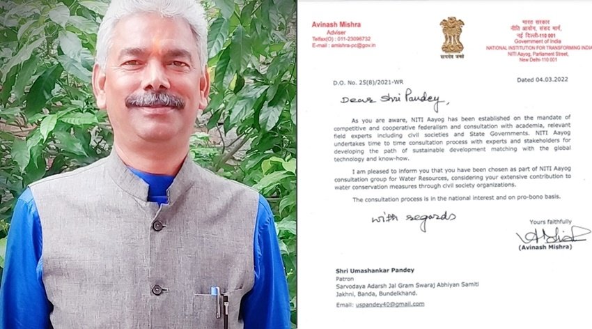 जाने-माने सर्वोदय नेता और सोशल एक्टिविस्ट तथा जल ग्राम जखनी के संस्थापक उमा शंकर पांडेय पिछले बीस वर्षों से जल संरक्षण और प्रबंधन के क्षेत्र में काम कर रहे हैं। उन्होंने बुंदेलखंड जैसे सूखाग्रस्त क्षेत्र में “खेत पर मेड़ मेड़ पर पेड़” की अनोखी तकनीकी से जल संरक्षण का एक बड़ा काम किया है। भारत सरकार के जलशक्ति मंत्रालय की ओर से वर्ष 2019 में उन्हें राष्ट्रीय जल पुरस्कार (NWA) के तहत तत्कालीन उपराष्ट्रपति वेंकैया नायडू की अध्यक्षता में भारत के जल शक्ति मंत्री गजेंद्र सिंह शेखावत ने जलयोद्धा का पुरस्कार प्रदान किया था।