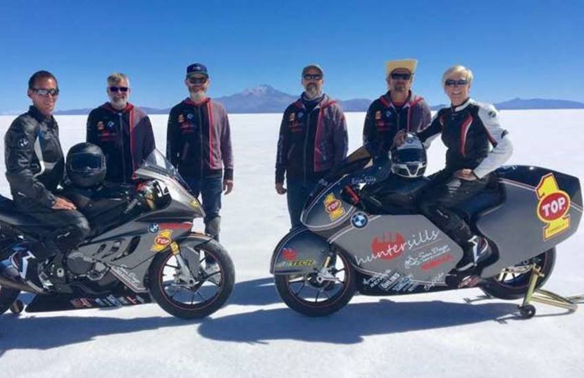 बोलीविया में हंटर सिल्स रेसिंग टीम ने टॉप स्पीड का नया वर्ल्ड रिकॉर्ड बना डाला है। HSR टीम ने 1,000CC की बाइक के टॉप स्पीड के रिकॉर्ड को तोड़ दिया है। यह रिकॉर्ड 4 सिलेंडर बाइक में बिना किसी मॉडिफिकेशन के तोड़ा गया है। टीम ने 368.54 किलोमीटर प्रति घंटे की स्पीड का रिकॉर्ड बनाया है। वहीं BMW की 1000CC की बाइक में थोड़े मॉडिफिकेशन के बाद इस रिकॉर्ड को भी तोड़ दिया गया। इसकी टॉप स्पीड 390 किलोमीटर प्रति घंटे की रही। यह स्पीड अब तक की BMW की किसी भी बाइक के लिए सबसे बड़ा रिकॉर्ड है। बाइक को एरिन सिल्स ने चलाया था, एरिन सिल्स ने अपने पति द्वारा 2013 में बोनेविले साल्ट फ्लैट्स में बनाए गए 355.665 किलोमीटर प्रति घंटे के रिकॉर्ड को तोड़ दिया।