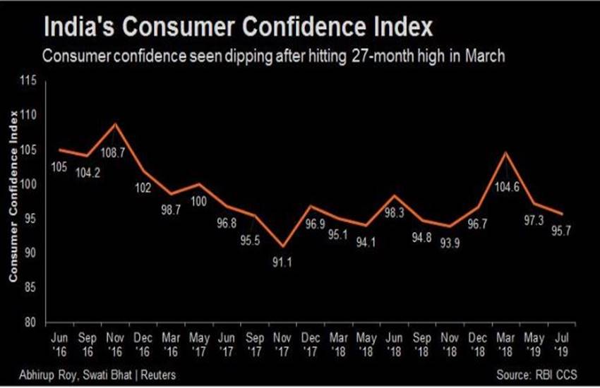 मंदी की आहट के बीच कंपनियां नौकरियों में कटौती कर रही हैं। देश में ऑटो सेक्टर ने अकेले करीब साढ़े तीन लाख नौकरियों में कटौती की है। आम आदमी के इस्तेमाल वाली सस्ती बिस्सिट बनाने वाली कंपनी पारले जी में भी 10,000 नौकरियों पर संकट मंडरा रहा है। कंपनी ने कम मांग का हवाला दे नौकरियां खत्म करने की बात कही है। रॉयटर्स के मुताबिक देश में कंज्यूमर डिमांड में गिरावट की वजह से कंज्यूमर इंडेक्स भी लड़खड़ा रहा है। मार्च 2018 में कंज्यूमर कन्फिडेंस इंडेक्स 104.6 फीसदी था जो सवा साल बाद घटकर जुलाई 2019 में 95.7 फीसदी रह गया है।