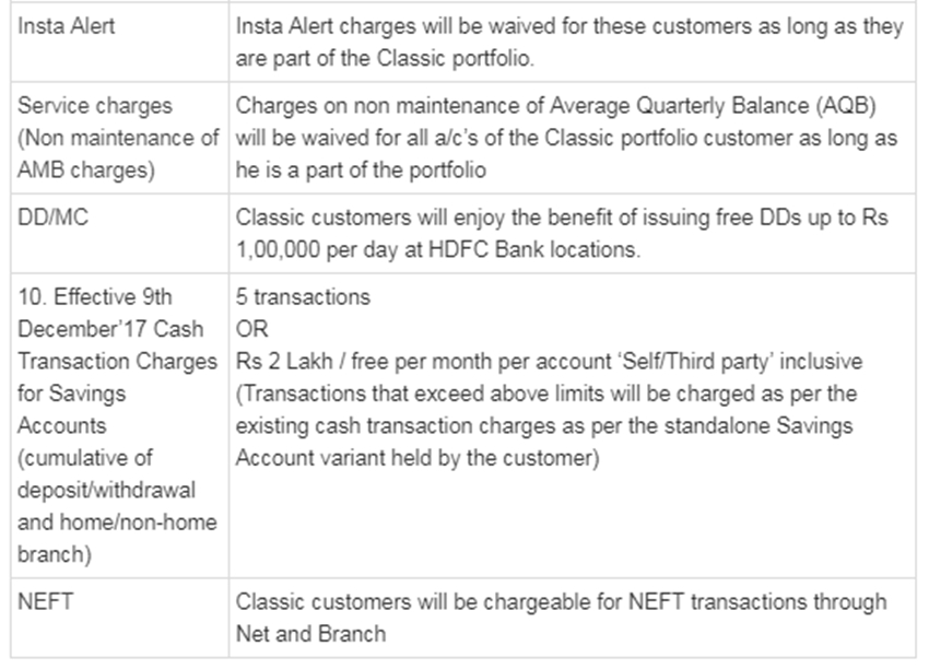 बैंक ने इससे पहले आरटीजीएस और एनईएफटी के जरिए किए जाने वाले ऑनलआइन लेन-देन को फ्री कर दिया था। बैंक का यह फैसला एक नवंबर से अमल में लागा गया था। क्लासिक श्रेणी में आने वाले खाताधारकों और उनके परिजन को ढेर सारे फायदे मिलते हैं, जिसमें कई निवेश से जुड़ी चीजें भी शामिल होती हैं। खास बात है कि इस खाते के तहत आपकी आर्थिक जरूरतों का ख्याल रखने के लिए एक व्यक्तिगत बैंक कर्मी भी होता है। वह समय समय पर खाताधारकों की जरूरतों से अवगत होता रहता है।