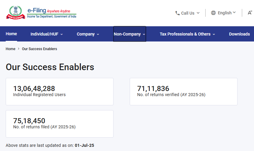 No refund on ITR AY 2025-26: इस वर्ष AY 2025-26 के लिए आयकर रिटर्न (ITR) फाइल करना मई के आखिर में शुरू हुआ। अब तक 75 लाख से अधिक रिटर्न फाइल किए जा चुके हैं। आधिकारिक वेबसाइट के अनुसार, अभी तक करीब 71.1 लाख रिटर्न ई-वेरीफाई किए जा चुके हैं।पहले, संसाधित (Processed) किए गए ITR की संख्या वेबसाइट पर नियमित रूप से अपडेट की जाती थी, लेकिन अब वह डेटा दिखाई नहीं देता है। यह स्क्रीन शॉर्ट दिया गया है।