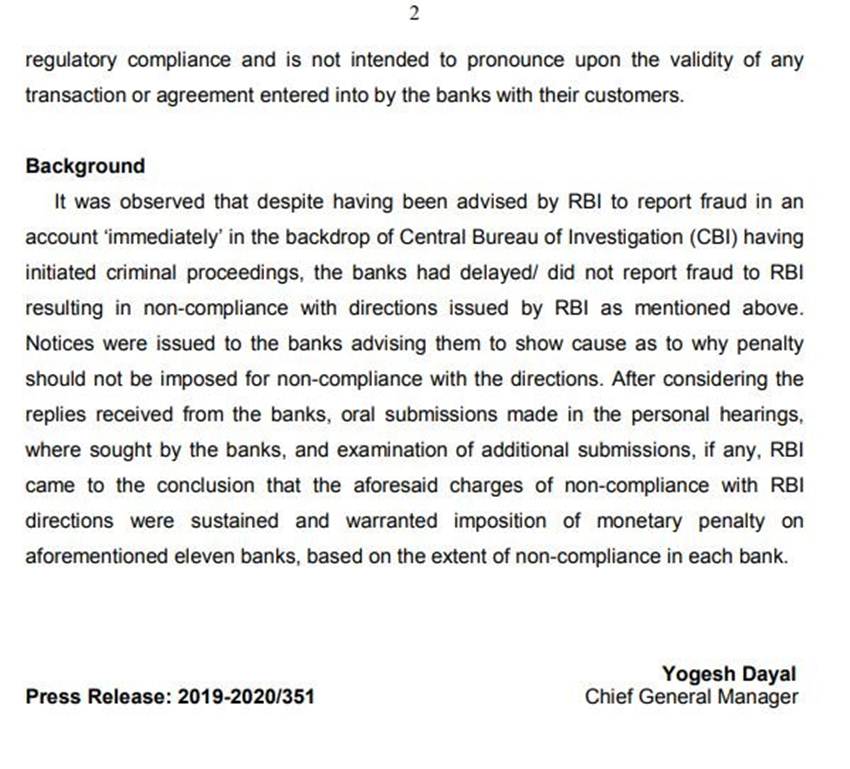 आरबीआई ने यह कार्रवाई बैंकिंग रेग्युलेशन एक्ट, 1949 के सेक्शन 47 ए (1) (सी) के साथ सेक्शन 46 (4) (i) व (51) (1) के तहत की है। दरअसल, इन सभी बैंकों ने आरबीआई द्वारा 2016 में दिए गए निर्देशों का पालन नहीं किया था।