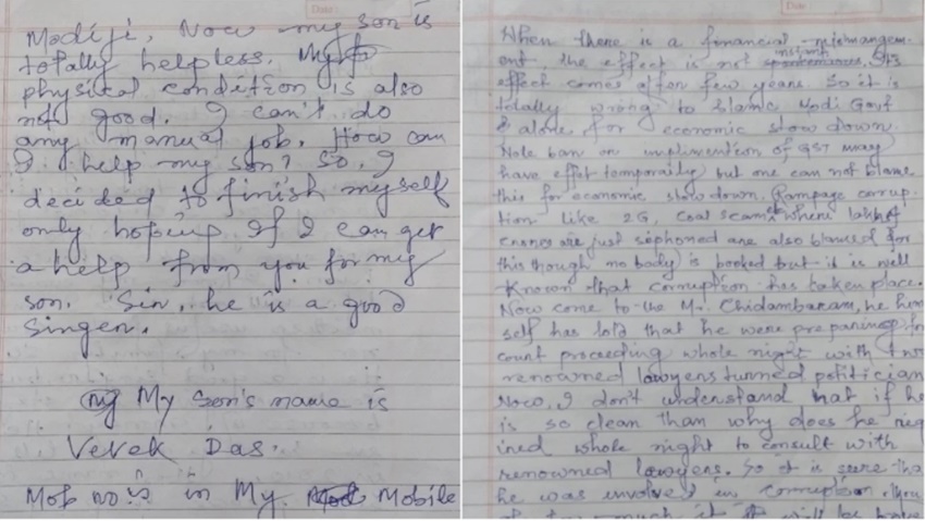 बिजन दास ने बताया है कि उनके बेटे का नाम विवेक दास है और उसे गायकी का शौक है। विवेक दास ‘Saregamapa Little Champs’ का हिस्सा भी रहे हैं। बिजन दास ने अपने सुसाइड नोट में लिखा है कि वो अपने जवान बेटे के लिए कुछ भी नहीं कर सके। उन्होंने प्रधानमंत्री नरेंद्र मोदी से अपने बेटे की मदद करने की अपील भी की है ताकि वो एक सफल गायक बन सके।