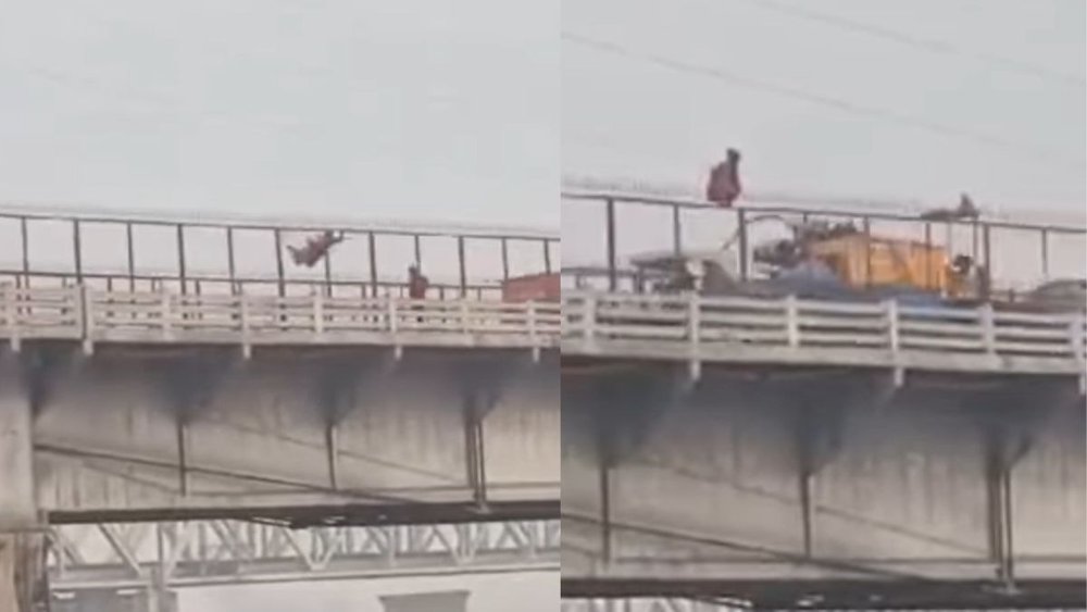 वायरल वीडियो में दिख रहा है कि युवती नदी के ऊपर बने पुल की ग्रिल पर चढ़कर बैठी है। वो कुछ देर तक वहीं बैठी रहती है। हालांकि, जब उसकी नजर एक शख्स पर पड़ती है जो उसे बचाने के लिए आ रहा होता है तो वो नदी में छलांग लगा देती है।
