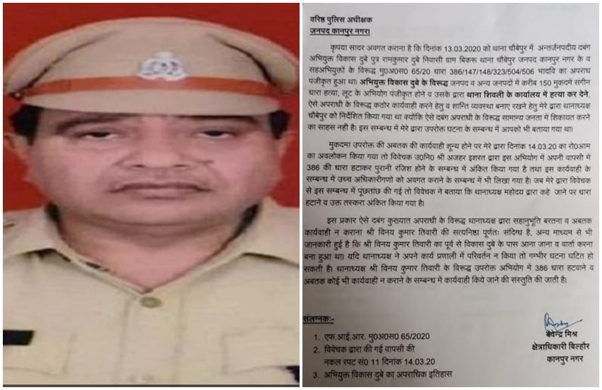 बताया जा रहा है कि मार्च के महीने में चौबेपुर थाना के सीओ देवेंद्र मिश्र ने तत्कालीन एसएसपी को खत लिखकर कई बातें बताई थीं। देवेंद्र मिश्र की जो चिट्ठी इस वक्त मीडिया में सामने आई है उसमें लिखा गया है कि – ‘इस प्रकार ऐसे दबंग कुख्यात अपराधी के विरुद्ध थानाध्यक्ष द्वारा सहानुभूति बरतना व अब तक कार्यवाही ना कराना विनय तिवारी की सत्यनिष्ठा पूर्णत: संदिग्ध है, अन्य माध्यम से भी जानकारी हुई है कि श्री विनय कुमार तिवारी का पूर्व से विकास दुबे के पास आना-जाना व वार्ता करना बना हुआ था।