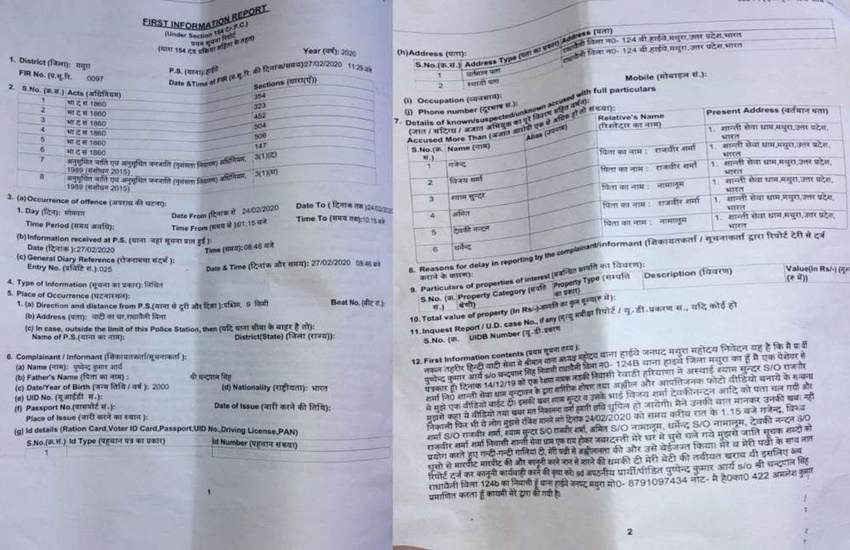 इस मामले में देवकीनंदन सहित 6 लोगों के खिलाफ केस दर्ज कराया गया है। देवकीनंदन के अलावा जिन अन्य 5 लोगों पर केस दर्ज कराया गया है उनमें श्यामसुंदर, गजेंद्र, विजय, अमित और धर्मेंद्र शामिल हैं। इन सभी पर एससी/एसटी एक्ट और भारतीय दंड संहिता की धारा 354, 323, 452, 504, 506 और 147 के तहत रिपोर्ट दर्ज की गई है।