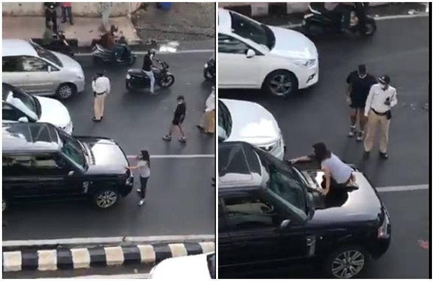 जो वीडियो सोशल मीडिया पर वायरल हुआ है उसमें नजर आ रहा है कि बच सड़क पर यह महिला एक गाड़ी के सामने खड़ी है। फिर वो अचानक गाड़ी की ड्राइविंग सीट पर बैठे युवक की तरफ जाती है और दरवाजा खोलने की कोशिश करने लगती है। इस दौरान सड़क पर यातायात व्यवस्था बाधित है।