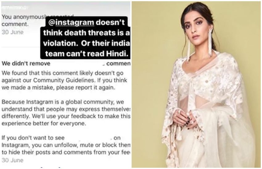 इसके बाद इंस्टाग्राम की तरफ से लिखा गया कि ‘हम आपका फीडबैक दूसरों के बेहतर अनुभवों के लिए इस्तेमाल करेंगे। अगर आप उन्हें (जिन्होंने जान से मारने की धमकी दी है) नहीं देखना चाहते तो उन्हें अनफॉलो करें, म्यूट करें या ब्लॉक कर दें।’ इसपर सोनम कपूर ने प्रतिक्रिया देते हुए लिखा कि ‘बिल्कुल, मैं इस शख्स को ब्लॉक कर दूंगी। लेकिन आप ऐसे कम्यूनिटी को सुरक्षा प्रदान कर रहे हैं।’