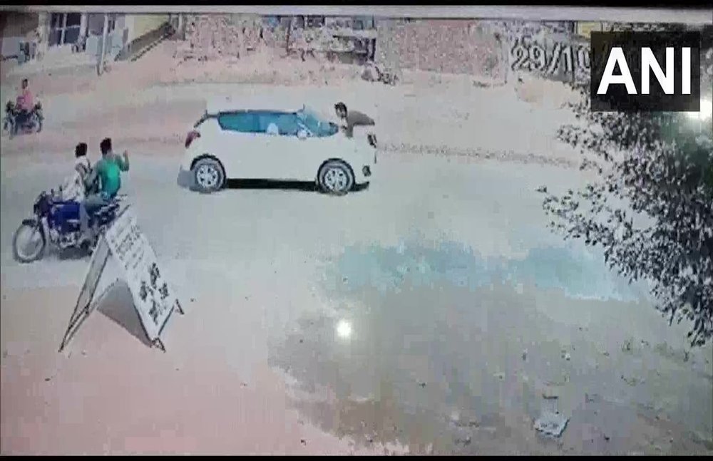 उत्तर प्रदेश के अलीगढ़ में वाहन चेकिंग के दौरान एक कार ड्राइवर ने पुलिस वाले को टक्कर मार दी। टक्कर मारने के बाद पुलिस वाला कार की बोनट में फंस गया। जिसके बाद ड्राइवर काफी दूर तक पुलिस वाले को सड़क पर इसी हालत में घसीटता रहा। इस पूरी घटना का एक वीडियो भी वायरल हुआ है। वायरल वीडियो में नजर आ रहा है कि पुलिस वाला कार की बोनट पर है औऱ ड्राइवर तेज रफ्तार में कार चला रहा है। इस पूरे मामले पर अलीगढ़ (ग्रामीण), पुलिस अधीक्षक शुभम पटेल ने कहा कि भारतीय दंड संहिता की धाराओं के तहत केस दर्ज कर लिया गया है। कार के मालिक को गिरफ्तार कर लिया गया है।