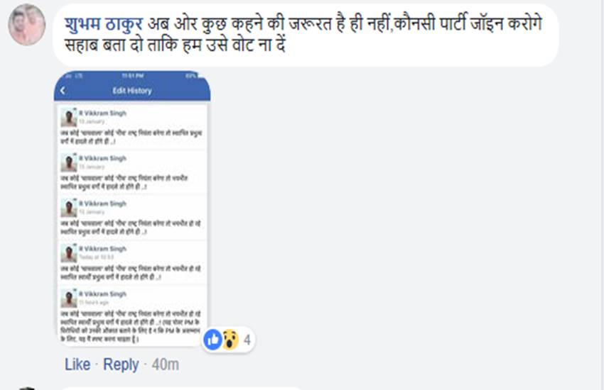 लोगों ने कुछ यूं जाहिर की प्रतिक्रियाः डीएम राघवेंद्र सिंह की फेसबुक पोस्ट पर तरह-तरह की प्रतिक्रियाएं सामने आईं। शुभम ठाकुर नामक यूजर ने ट्रोल करते हुए कहा- आप कौन सी पार्टी ज्वॉइन करेंगे, साहब बता दो, ताकि हम उसे वोट न दें।