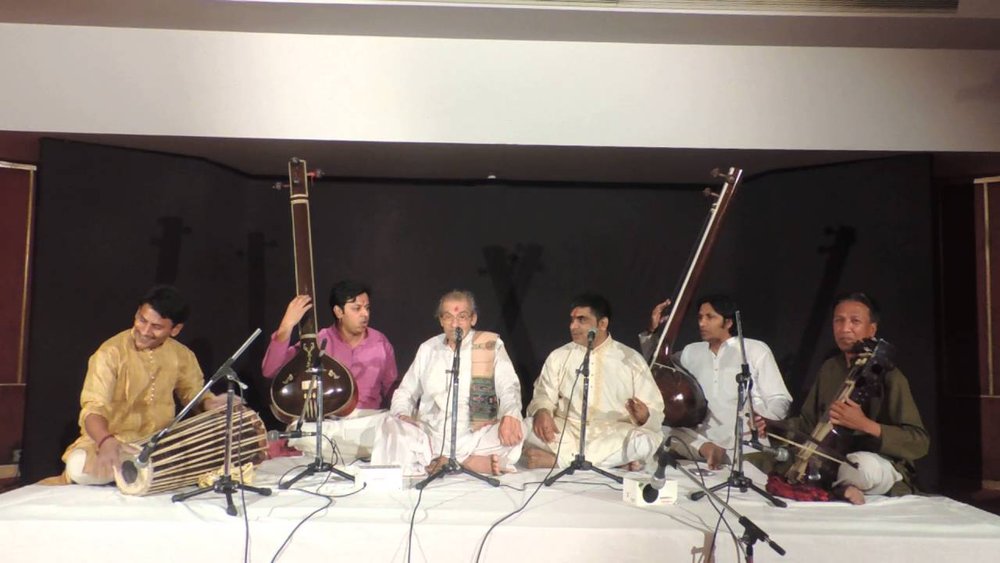 इस शाम अपने ध्रुपद गायन की शुरुआत उन्होंने राग भूप-कल्याण से की जिसे आम तौर पर शुद्ध-कल्याण कहा जाता है। आलापचारी सहित चौताल में प्रस्तुत ध्रुपद के बोल थे-‘चंद्र मुख नेत्र कमल नयन…’। उनके साथ सारंगी पर रऊफ मोहम्मद और पखावज पर शुभाशीष पाठक थे। सुमीत ने अपनी एकल प्रस्तुति में ही नहीं गुरु के साथ तानपुरे पर संगति करते हुए अंतिम प्रस्तुति में भी अपनी विधिवत तालीम का अच्छा परिचय दिया। पं. अभय नारायण मल्लिक के साथ अन्य शिष्य अजय कुमार पाठक थे जिन्होंने अपनी एकल प्रस्तुति में राग आभोगी में आलाप सहित धमार ‘मान न करिए’ पेश किया। उनके साथ पखावज पर देवाशीष पाठक थे और सारंगी पर रऊफ मोहम्मद।