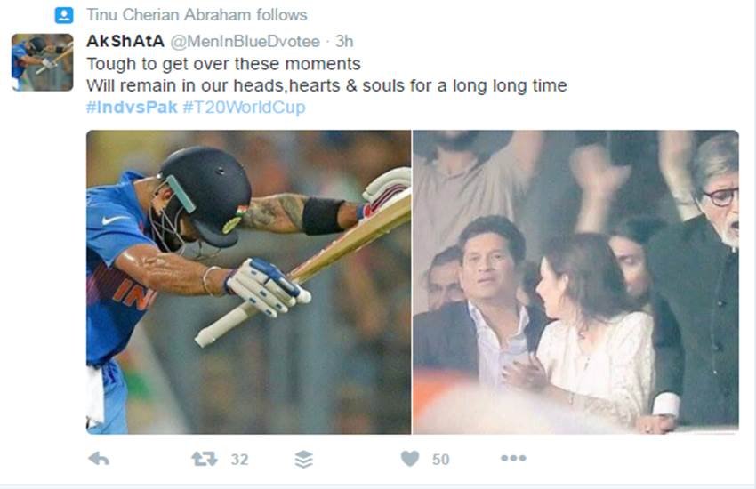 भारत को सेमीफाइनल में पहुंचाने में अहम भूमिका निभाने वाले विराट कोहली ने रविवार (27 मार्च) को यहां ऑस्ट्रेलिया के खिलाफ आईसीसी विश्व टी20 में नाबाद 82 रन की पारी को अपनी सर्वश्रेष्ठ तीन पारियों में एक करार दिया। कोहली ने ऐसे समय में 51 गेंदों पर नौ चौकों और दो छक्कों की मदद से यह पारी खेलकर भारत को लक्ष्य तक पहुंचाया जबकि उसने शुरू में तीन विकेट गंवा दिये थे। कोहली को इस शानदार पारी के लिये मैन ऑफ द मैच चुना गया।