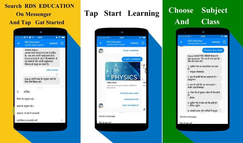 RDS Education एक Artificial Intelligence Software है, जो आपके फेसबुक Messenger से आसानी से लिंक हो जाएगा। इसे डाउनलोड या इंस्टॉल करने का कोई झंझट नहीं है। आप Messenger पर RDS Education सर्च करके इसका इस्तेमाल कर सकते हैं।
