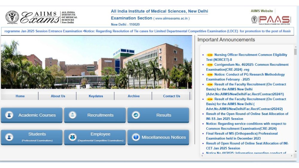 चरण 1: आधिकारिक वेबसाइट, यानी aiimsexams.ac.in पर जाएँ।