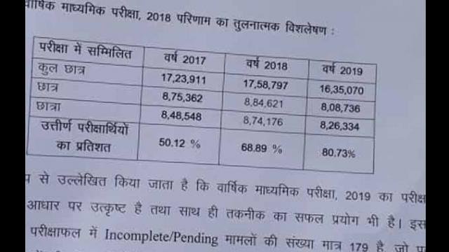 16 लाख 35 हजार 70 स्टूडेंट्स परीक्षा में शामिल हुए थे। इसमें 13 लाख 20 हजार 03 फीसदी स्टूडेंट्स पास हुए। पास होने वाले स्टूडेंट्स में 6 लाख 83 हजार 990 लड़के और 6 लाख 36 हजार 049 लड़कियां पास हुई हैं।
