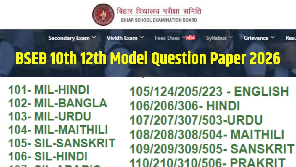 BSEB द्वारा जारी किए गए 10वीं और 12वीं के मॉडल प्रश्न पत्र 2026 छात्रों के लिए परीक्षा की तैयारी को मजबूत करने का सुनहरा मौका है। सभी विद्यार्थी समय रहते अपने विषयों के मॉडल पेपर डाउनलोड कर अभ्यास शुरू कर दें।