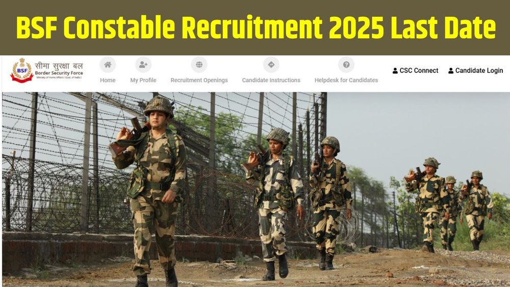 BSF Constable Tradesman Application Form 202 Last Date: बॉर्डर सिक्योरिटी फोर्स (BSF) में कांस्टेबल (ट्रेड्समैन) पदों पर भर्ती के लिए आवेदन प्रक्रिया आज, 23 अगस्त 2025 को बंद हो जाएगी। इच्छुक उम्मीदवार आधिकारिक वेबसाइट rectt.bsf.gov.in पर जाकर ऑनलाइन आवेदन कर सकते हैं, जिसका डायरेक्ट लिंक और स्टेप-बाय-स्टेप प्रोसेस यहां दी गई है। बीएसएफ द्वारा यह भर्ती अभियान कुल 3588 पदों पर नियुक्तियों के लिए चलाया जा रहा है।
