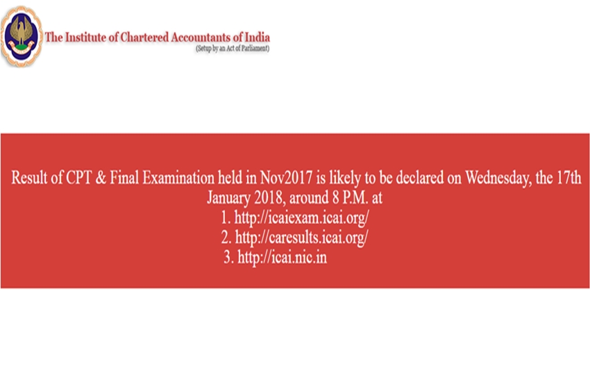 CA Final Nov Result 2017, ICAI CA CPT Result 2017 Updates
