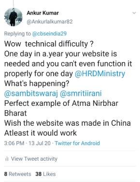 वेबसाइट क्रैश होने पर छात्र अपनी नाराज़गी ट्विटर पर जाहिर कर रहे हैं।
