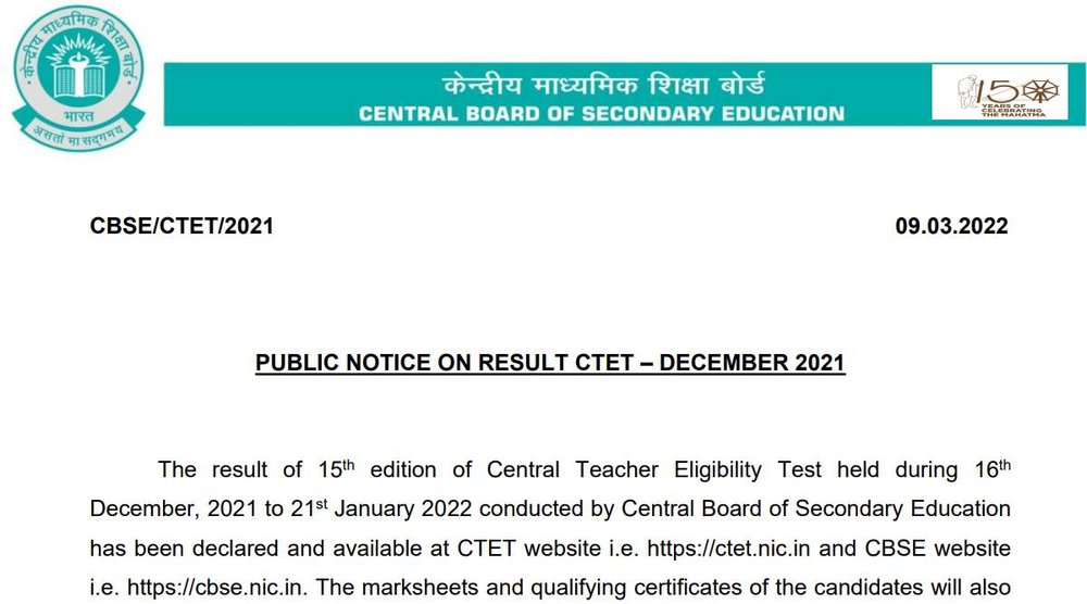 CTET Result 2021: केंद्रीय माध्यमिक शिक्षा बोर्ड (CBSE) ने सेंट्रल टीचर एलिजिबिलिटी टेस्ट (CTET) का रिजल्ट घोषित कर दिया है। जो उम्मीदवार इस परीक्षा में उपस्थित हो गए थे, वह अब बोर्ड की आधिकारिक वेबसाइट cbse.nic.in या ctet.nic.in के माध्यम से परीक्षा का रिजल्ट चेक करके डाउनलोड कर सकते हैं।