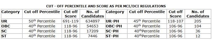 नीट की परीक्षा मेडिकल व डेन्टल कॉलेजों में दाखिले के लिए आयोजित की जाती है। यह परीक्षा AIIMS और JIPMER पुदुचेरी जैसे चुनिंदा संस्थानों को छोड़कर देश के सभी मेडिकल संस्थानों में MBBS/BDS कोर्सेज में दाखिला लेने के लिए आयोजित की जाती है।