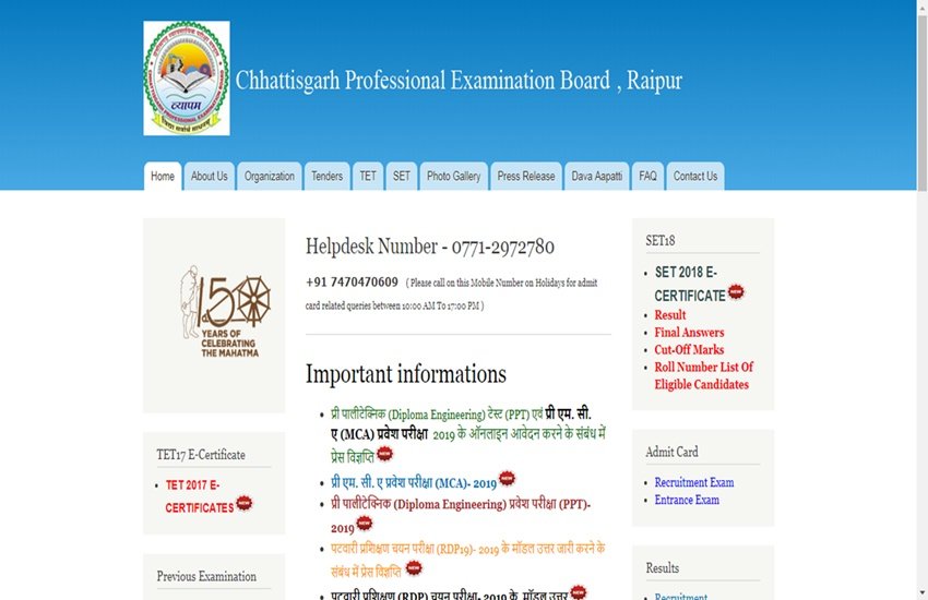 छत्तीसगढ़ व्यावसायिक परीक्षा मंडल ने सीजीव्यापम पटवारी परीक्षा की पहली उत्तर कुंजी जारी कर दी हैं। पटवारी के पदों पर भर्ती के लिए छत्तीसगढ़ व्यावसायिक परीक्षा मंडल (CGPEB) द्वारा लिखित परीक्षा 17 मार्च 2019 को आयोजित की गई थी। पटवारी भर्ती परीक्षा सुबह 10:00 बजे से दोपहर 01:15 बजे तक आयोजित की गई थी। जो अभ्यर्थी इस माह परीक्षा में उपस्थित हुए थे वे फौरन आधिकारिक वेबसाइट cgvyapam.choice.gov.in पर जाकर परीक्षा की उत्तरकुंजी डाउनलोड करें। उत्तरकुंजी वेबसाइट पर पीडीएफ फार्मेट में उपलब्ध है।