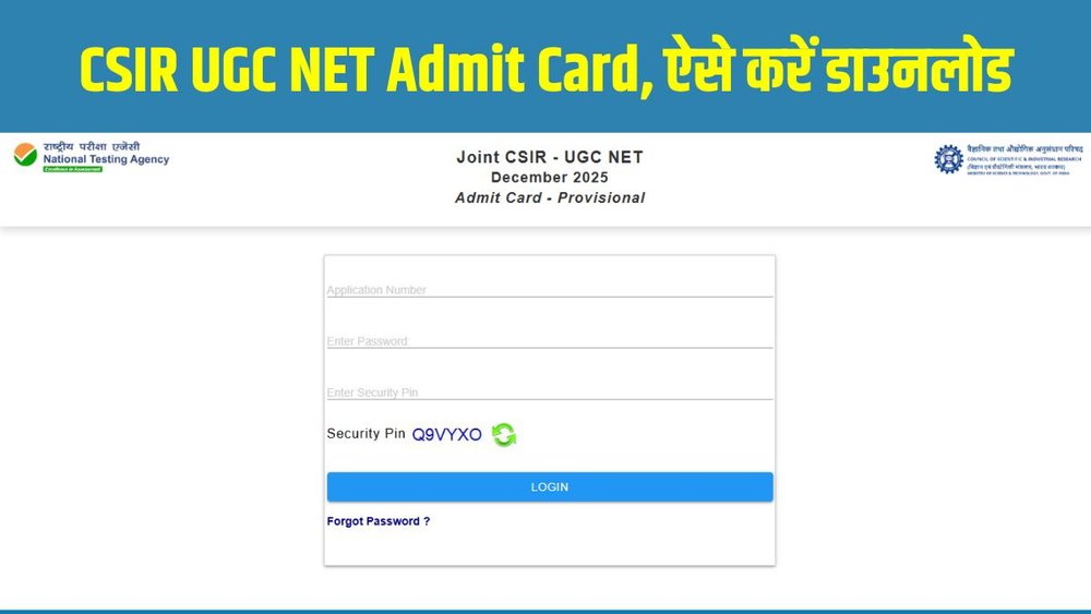नेशनल टेस्टिंग एजेंसी (NTA) ने सीएसआईआर यूजीसी नेट 2025 (CSIR UGC NET 2025) दिसंबर सत्र के लिए एडमिट कार्ड जारी कर दिए हैं। जिन उम्मीदवारों ने इस परीक्षा के लिए पंजीकरण किया था, वे अब आधिकारिक वेबसाइट csirnet.nta.nic.in पर जाकर अपना हॉल टिकट डाउनलोड कर सकते हैं। NTA द्वारा जारी आधिकारिक नोटिस में स्पष्ट किया गया है कि एडमिट कार्ड जारी होने का अर्थ यह नहीं है कि उम्मीदवार की पात्रता अंतिम रूप से स्वीकार कर ली गई है। पात्रता की जांच आगे की प्रक्रियाओं में की जाएगी।