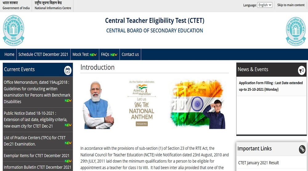 इस बार केंद्रीय शिक्षक पात्रता परीक्षा (CTET) 16 दिसंबर से 13 जनवरी के बीच आयोजित होगी। अभ्यर्थियों से इस परीक्षा के लिए आवेदन 19 सितंबर से 25 अक्टूबर के बीच मांगे गए थे।