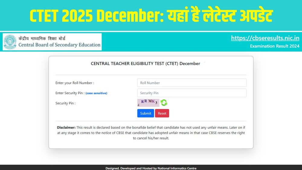 सीटीईटी दिसंबर 2024 सत्र 14 और 15 दिसंबर, 2024 को आयोजित किया गया था, जिसके लिए आवेदन विंडो 17 सितंबर से 16 अक्टूबर, 2024 तक खुली थी। परीक्षा दो शिफ्ट में आयोजित की गई थी – पेपर II सुबह (सुबह 9:30 बजे से दोपहर 12:00 बजे तक) और पेपर I दोपहर (दोपहर 2:30 बजे से शाम 5:00 बजे तक)। परिणामों के बाद, योग्यता प्रमाण पत्र उम्मीदवारों को डाउनलोड करने के लिए डिजिलॉकर पर अपलोड कर दिए गए थे।
