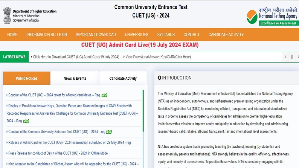 वेबसाइट के होम पेज पर ही Latest News सेक्शन में ‘Click Here to Download CUET (UG) Admit Card (19 July 2024)’ लिंक दिखाई देगा। उस पर क्लिक करें।