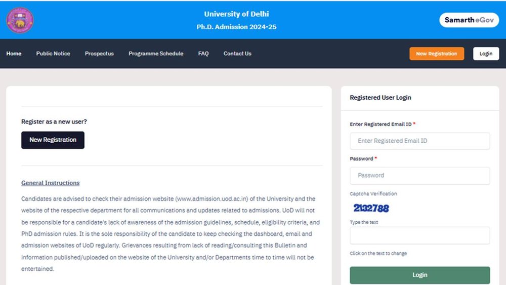 दिल्ली यूनिवर्सिटी में पीएचडी कार्यक्रम में दाखिला लेने की प्रक्रिया शुरू हो गई है। एकेडमिक सेशन 2024-25 के लिए विभिन्न पीएचडी कार्यक्रम में प्रवेश के लिए रजिस्ट्रेशन प्रोसेस 13 नवंबर 2024, बुधवार से शुरू हो गया है। पंजीकरण प्रक्रिया 4 दिसंबर 2024 तक चलेगी। जो भी इच्छुक और पात्र उम्मीदवार रजिस्ट्रेशन करना चाहते हैं वह आधिकारिक वेबसाइट phd2024.uod.ac.in पर विजिट कर सकते हैं।