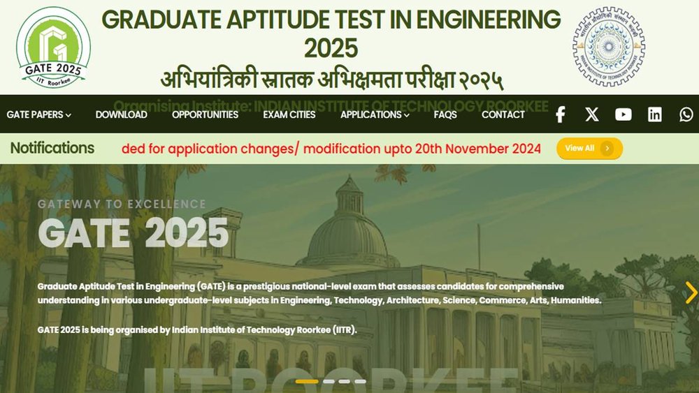 आईआईटी रुड़की ने ग्रेजुएट एप्टीट्यूड टेस्ट इन इंजीनियरिंग यानी गेट परीक्षा 2025 के लिए एप्लीकेशन फॉर्म में करेक्शन करने की अंतिम तिथि को आगे बढ़ा दिया है। गेट 2025 एग्जाम की करेक्शन विंडो आज (10 नवंबर 2024) बंद होनी थी, लेकिन इसे बढ़ाकर अब 20 नवंबर 2024 कर दिया गया है। अभी तक जिन उम्मीदवारों ने अपने फॉर्म में जरूरत के हिसाब से कोई करेक्शन नहीं किया था वह 20 नवंबर से पहले उस गलती को सुधार लें। अब करेक्शन विंडो निर्धारित तिथि पर बंद कर दी जाएगी।
