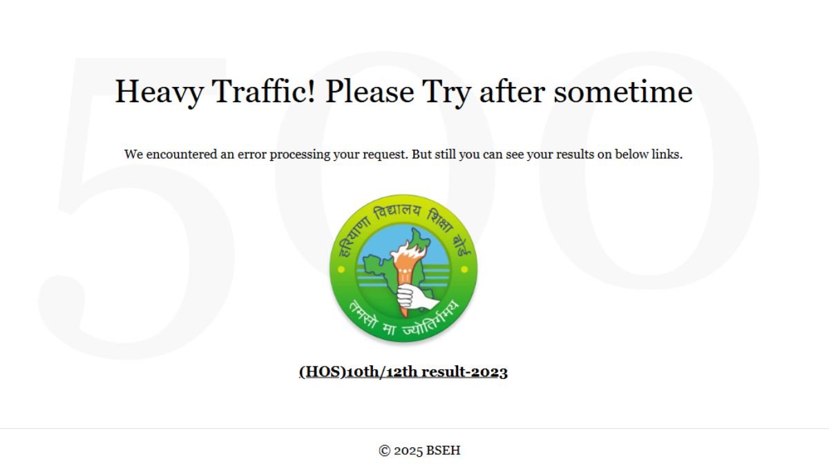 छात्रों की अत्यधिक संख्या में वेबसाइट पर आने के कारण हरियाणा बोर्ड की ऑफिशियल वेबसाइट काम नहीं कर रही है, जिसके चलते छात्रों से थोड़ी देर बाद ट्राई करने की अपील की जा रही है।