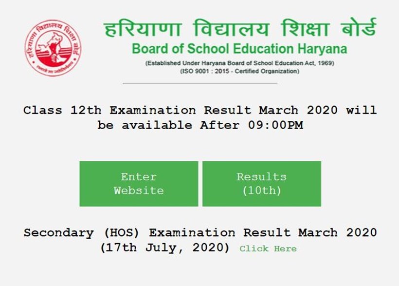 BSE Haryana Board 12th Result 2020 Live: Check Direct Link
