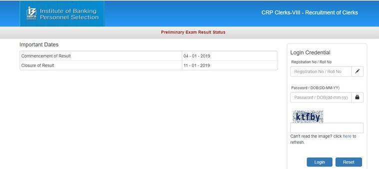 2)- होम पेज पर जाने पर ‘Click here to IBPS Clerk preliminary exam results 2018’ लिंक पर क्लिक करें।