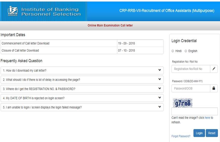 IBPS RRB Office Assistant Clerk Mains Admit Card 2018: इंस्टीट्यूट ऑफ बैकिंग पर्सनल सेलेक्शन (आईबीपीएस) की ऑफिस एसिस्टेंट (मस्टीपर्पज) मेन परीक्षा के एडमिट कार्ड जारी हो चुके हैं। उम्मीदवार अपने एडमिट कार्ड IBPS की आधिकारिक वेबसाइट से डाउनलोड कर सकते हैं। तो चलिए सबसे पहले जानते हैं एडमिट कार्ड डाउनलोड करने का तरीका। विजिट करें वेबसाइट http://www.ibps.in पर। होम पेज पर आपको “CRP-RRB-VII-Recruitment of Office Assistants (Multipurpose) Online Main Examination Call letter” लिंक दिखेगा। इस लिंक पर क्लिक करें। अब मांगी गई डिटेल्स जैसे रोल नंबर/रजिस्ट्रेशन नंबर और पासवर्ड डालकर लॉगइन करें। लॉगइन करने के बाद आप एडमिट कार्ड डाउनलोड कर सकते हैं। एडमिट कार्ड डाउनलोड कर प्रिंट निकाल लें। परीक्षा के लिए जाते समय अपने एडमिट कार्ड के साथ एक फोटो आईडी भी साथ जरूर रखें।