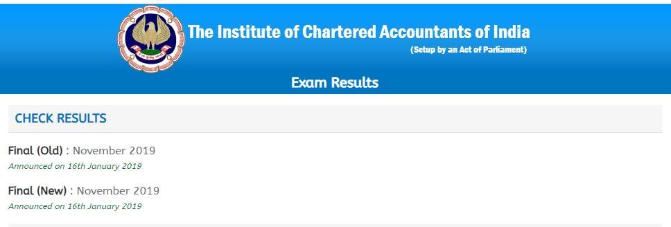 ICAI CA Intermediate Final Result Nov 2019: इंस्टिट्यूट ऑफ चार्टर्ड अकाउंटेंट्स ऑफ इंडिया आज 16 जनवरी 2020 को CA Final Exam रिजल्ट अपनी आधिकारिक वेबसाइट पर जारी कर दिए हैं। जो उम्मीदवार इस परीक्षा में शामिल हुए थे, वे अब आधिकारिक वेबसाइट icaiexam.icai.org पर जाकर अपना रिजल्ट चेक कर सकते हैं। हालांकि, परिणाम शाम 6 बजे जारी किए जाने थे लेकिन 4.30 बजे ही परिणाम जारी कर दिए हैं। इससे पहले, CAI के केंद्रीय परिषद सदस्य धीरज खंडेलवाल बुधवार को ट्वीट कर CA फाइनल परिणाम जारी होने की तारीख और समय के बारे में बताया था। उन्होंने ट्वीट कर बताया कि, ‘आज शाम 6 बजे तक रिजल्ट जारी कर दिए जाएंगे। मेरे सभी सीए फाइनल स्टूडेंट्स को शुभकामनाएं, जिनका रिजल्ट आज शाम 6 बजे तक घोषित होने वाला है।’